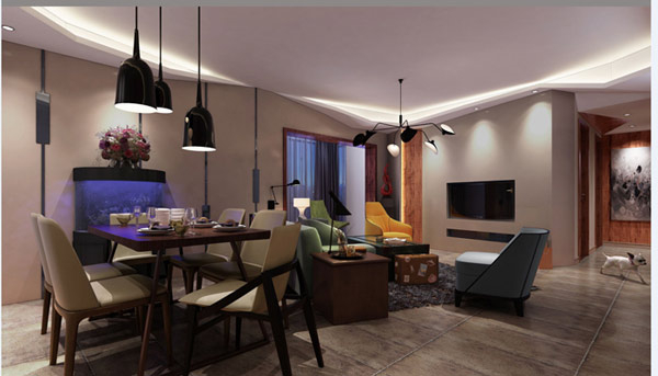 设计师点评:柠檬树装饰设计总监龚良品介绍,采用异型的设计方式都会在施工进行之前现场进行放样,把图纸还愿到空间里。制作部份比较讲究,须考虑每个点位的受力及使命寿命,材料的损耗方面比较大。沙发的摆放也是有斜度的,从而使整个居室空间更加活泼、生动。