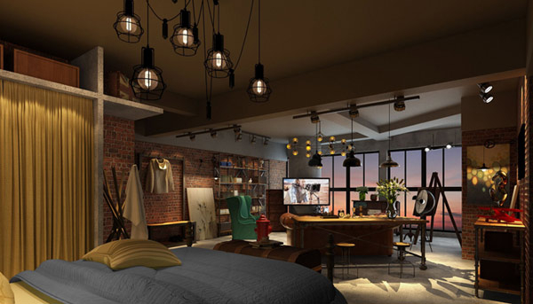 利用空间中的柱子 秀出前卫工业风
