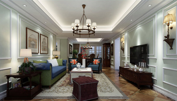 施工方面:由于美式风格大部分墙面做的墙纸,所以白色的实木线最好做亮色木器漆,这样就能造成材质对比;在电路开关插座施工过程中要尽量考虑使用习惯,符合人体工程学,开关控制合理,充分满足长期使用要求;墙上走实木线时应先用水平尺检查水平,如有少量不平用腻胶刮平,有空鼓起伏时需背部钉板找平后再上线条,以防止实木线无法安装。