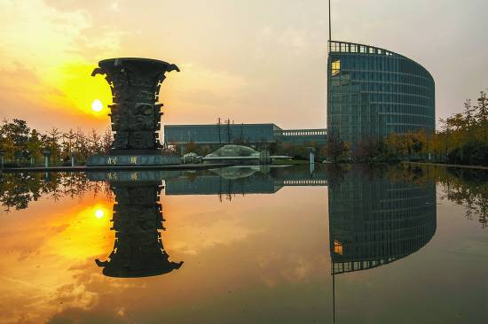 西北工业大学长安校区何尊广场和图书馆相映成趣