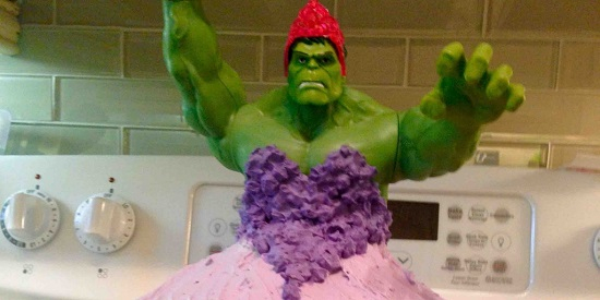 蛋糕完工后,艾尔顿夫妇将蛋糕的照片上传到了网上,获网友大赞。有人一语双关,借用“绿巨人”的经典台词赞扬到:“绿巨人砸(Hulk smash)破了传统性别角色。”