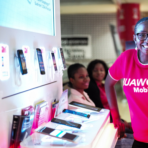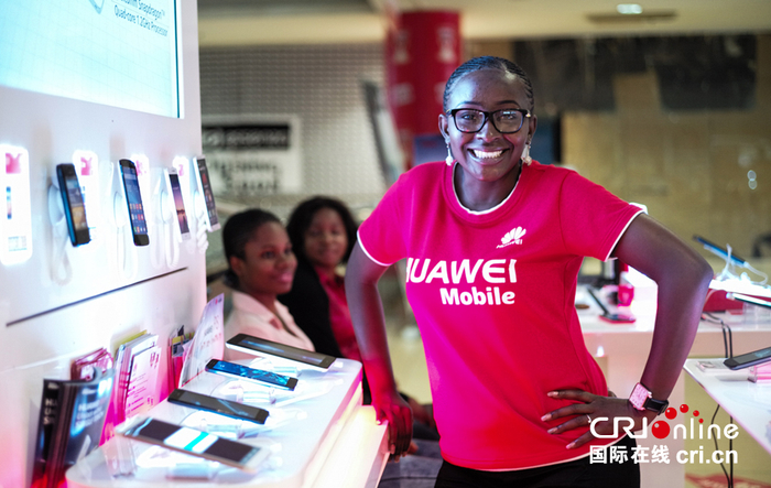 阿布贾华为手机经销商和她的摊位。华为公司在尼日利亚采取分销方式销售手机产品,并对国家代理和经销商进行培训和资质审核,为了防止仿冒,华为有专门巡视员抽查旗下销售商的行为。 摄影李晋