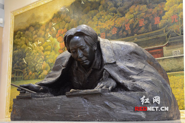 (毛泽东同志伏案写作。)