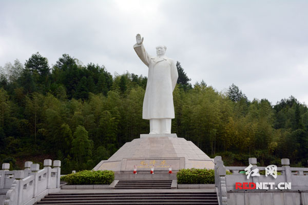 (瞻仰毛泽东同志雕像。)