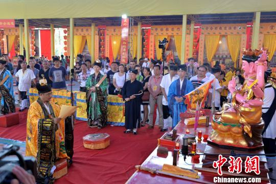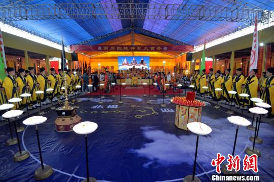 21日上午,以“弘扬凤山文化,同谒广泽尊王,共享太平和谐”为主题的第五届国际凤山文化旅游节,在福建南安市诗山凤山寺盛大开幕。图为“两岸四地道教文化大会香”活动。 陈鑫伟 摄
