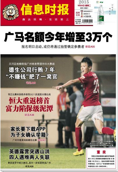 昨晚,2015赛季中超联赛第26轮展开最后一场争夺,广州富力在越秀山主场与广州恒大上演同城德比大战。结果,恒大凭借邹正在90分钟的进球,以2:1击败对手。