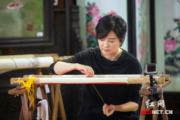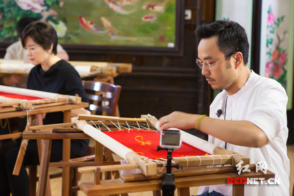 (湘绣精品吸引偶像们驻足)