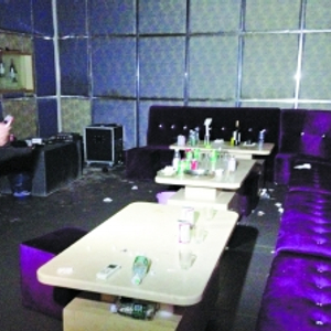 昨天中午,记者在办案民警的带领下,驾车经过一段非常颠簸的山间小路,来到了一个四面都是山的小山坳里。这个小山坳三面都是高耸的山岩,只有一面是小山坡,山坡上除了栽种有大量的荔枝树外,还用铁皮搭建一道高高的围墙。所有人员如若要进入到小山坳的核心位置,必须通过一道铁门。进入铁门,在小山坳中间,记者看见有一栋外表看上去非常简陋的铁皮房。但是,走进这间铁皮房后,记者发现房间里面却“别有洞天”,里面是两间装修非常豪华的包间,包间里高档的沙发、酒柜、高质量音响、吧台、打碟机、电视等设备,一应俱全,与五星级酒店KTV包房不相上下。