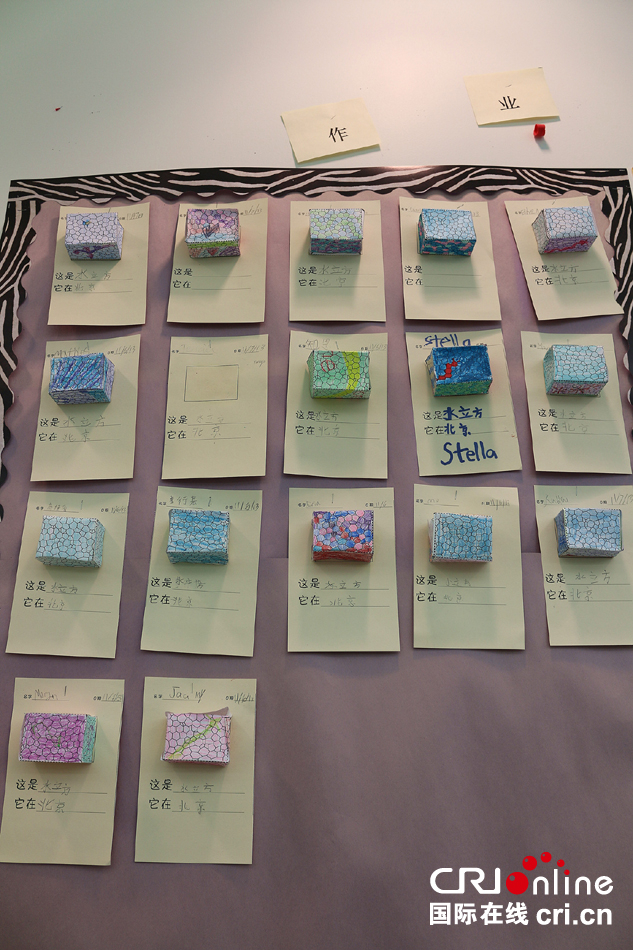 华盛顿育英学校学生完成的关于水立方的作业。(张旭 摄)