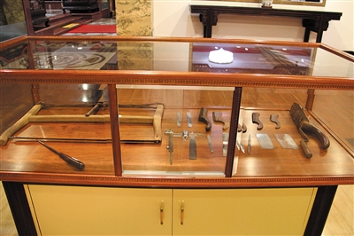 在古典家具制作中,开榫眼及雕刻都要用到各种形式的凿子。由于红木材质较硬,直接雕刻不易入刀,所以需要在雕刻前先用各种型号的圆凿按照纹样的大体轮廓凿出,常用的有平凿、圆凿、扁凿等。通常还搭配钻、斧子、锤子、木锉等一起使用。