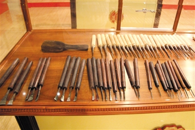 从古至今,雕刻仍以手工雕刻为主,各种雕刻刀具是工匠必备工具。根据刻刀的形状和角度不同,雕刻的刀具又有平刀、圆刀、三角刀、刮刀等类型,每种类型以口刃的大小又分不同的规格。每完成一件家具,大约要使用到上百种刀具。