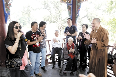 昨天在观音塘湿地公园偶遇两位老人,微博达人们纷纷拿出手机、相机和两位老人合影,还和两位老人一起唱起了《小城故事》、《千年等一回》等歌曲。