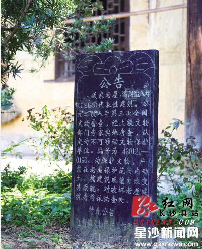 (2010年江背镇文物保护工作委员会在老屋外立了一块石碑。)