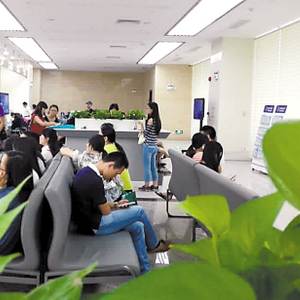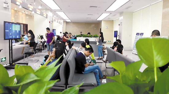 17日10时,记者来到软件路13号天河政务服务中心所在地。新址宽敞明亮(见右图),装修风格颇具岭南特色。中心共有六层楼,每一层都有不同的单位进驻,总服务台设在一楼中央。三部电梯内外的标示牌上,可以清楚知道各层的业务范围。需要办理商事登记的可直接前往一楼A区,市场监管局11个窗口,全部被前来办理业务的市民占满。专程从体育西赶过来办理商事登记业务的吴小姐称,她刚刚才到,但排队小票上显示她前面还有24个人在等。出入境业务办理区在二楼,食药监局、卫计局、财政局、供电局的业务办理统一集中在三楼,四楼是人力资源和社会保障业务办理区。据悉,天河区人社局包括社保、就业登记、失业登记等12项业务已全部迁往此处办理,劳动检查、仲裁、工伤鉴定等则仍在石牌东路117号办理。
