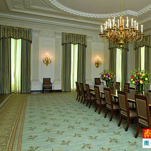 今年7月,美国第一夫人米歇尔主持对国宴厅进行重新装修,更换了新的窗帘、餐椅和地毯。据了解,国宴厅上一次装修是在17年前,由时任第一夫人希拉里操办。新的装修在原本米黄色为主的国宴厅中加入了更多的蓝绿色彩,使整个大厅看起来更加现代。