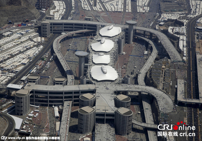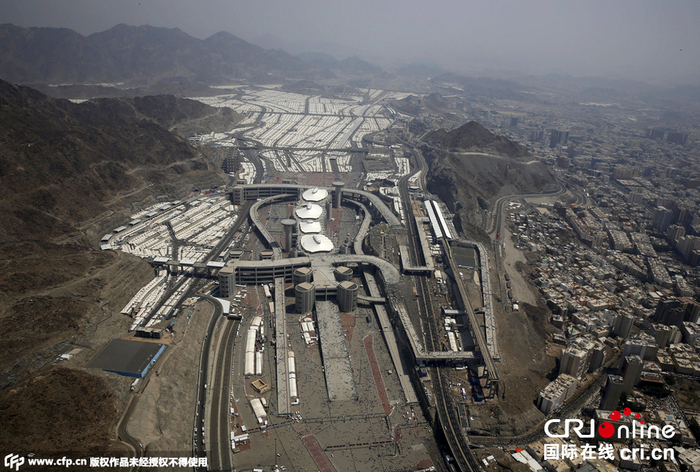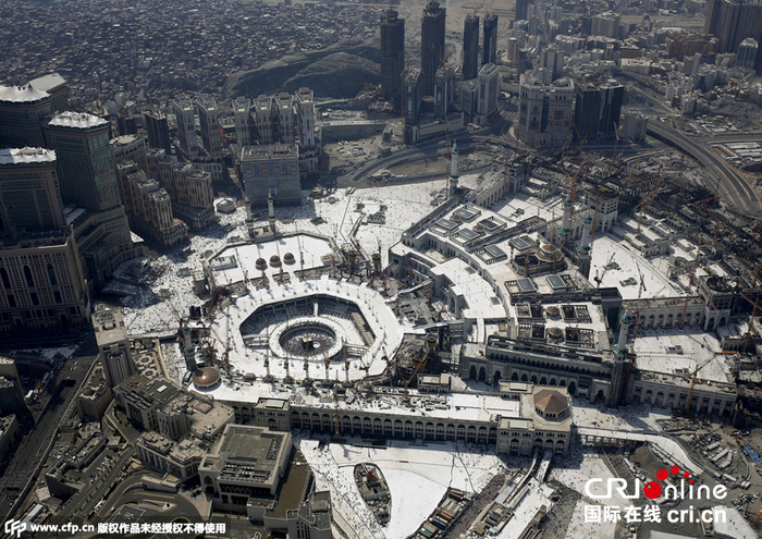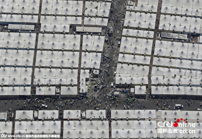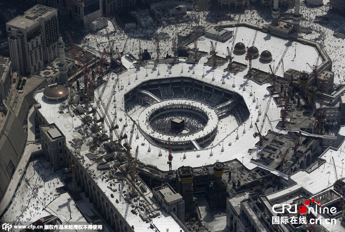 当地时间2015年9月25日,沙特阿拉伯麦加,航拍麦加大清真寺。 图片来源:Reuters/CFP