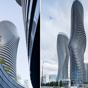 在加拿大多伦多市西边的密西沙加市,有两栋如美国女影星玛丽莲•梦露般身材的螺旋型大厦。