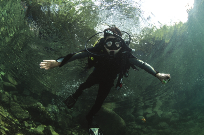 Flilex告诉记者,不是所有开放性水域都适合潜水。首先,龙门潭水下环境不复杂能见度高,深度适合初学者。加上有专业培训资质的教练进行指导在安全上得到了保证。除此之外,也不是所有人都适合潜水。首先你不能有鼻窦炎、中耳炎、高血压、心脏病等疾病,其次不能害怕水,而会不会游泳和潜水没有太大关系,不会游泳也可以潜水。