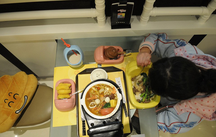 国际在线专稿:据英国《每日邮报》9月27日报道,主题餐厅总能给人不同的饮食经历。订餐软件APP HotelQuickly近日整理了火爆亚洲的五家奇葩主题餐厅,菲律宾的瀑布餐厅、泰国树荚餐厅以及卷心菜与安全套餐厅、台湾的航空餐厅和香港的厕所餐厅。