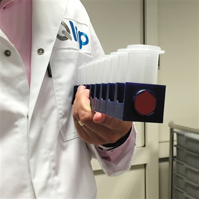 与菲仕兰合作的第三方检测机构Qlip实验室,采集牛奶的容器都带有芯片,避免混淆。陈伟斌 摄