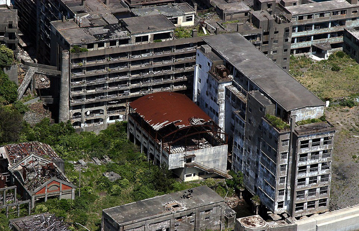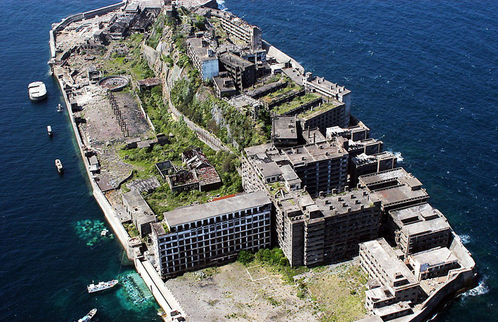 日本端岛:端岛又被称为军舰岛,它曾为邦德电影《007:大破天幕危机》提供灵感,充当007敌人的老巢。在岛上拍摄的外景镜头曾被用于灾难电影《2012》中。在1974年4月份之前,这里曾生活着5000多人。但是当煤矿关闭后,这个混凝土岛屿被废弃。自从那以来的数十年中,高耸的工业和住宅建筑已接近崩塌。(网页截图)