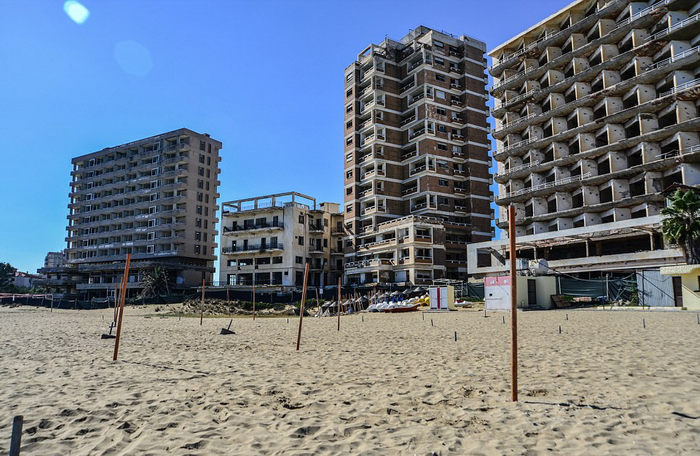 塞浦路斯瓦罗莎(Varosha):从远处看,瓦罗莎与其他海滨胜地没什么不同。可是走近后会发现,这里拥有最怪异的海边风景。瓦罗莎海滨曾吸引伊丽莎白·泰勒(Elizabeth Taylor)和碧姬·芭铎(Brigitte Bardot)等影星光顾。这里曾在1974年遭到土耳其军队入侵,此后拥有4万人口的城市被抛弃。(网页截图)