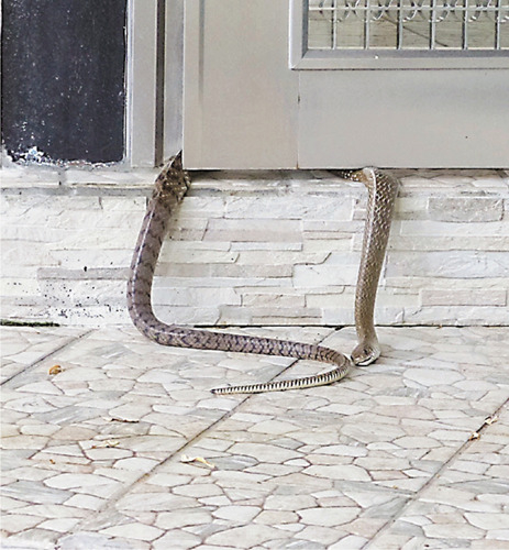 住户打开住所铁门时,赫见有蛇企图窜入,大惊之下慌忙关上铁门,不料刚好将该蛇夹在铁门缝隙。香港《文汇报》