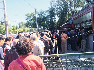 昨日,北海公园北门售票处,游客排起长队。