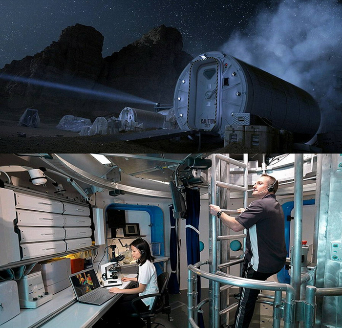 上图是《火星救援》电影中的宇航员居住地,下图则是美国宇航局建造的人类探索研究模拟舱。(网页截图)