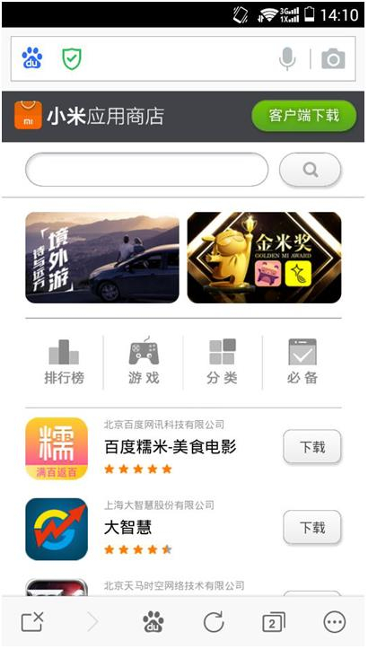 首先,用智能手机登录小米应用商店。