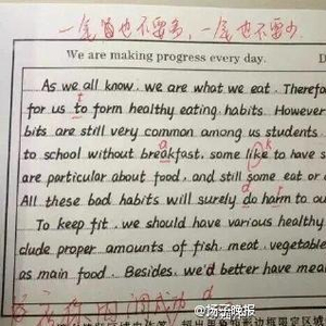 据说这是衡水中学的学生,手写的英语作文堪比印刷版,老师逆天要求:一笔不要多,一笔也不要少。经英媒报道,英国人看到这个后,#衡水打印体英国服了#。还有英国网友说:“我觉得该把孩子送到中国学英语?” (据@英国那些事儿)