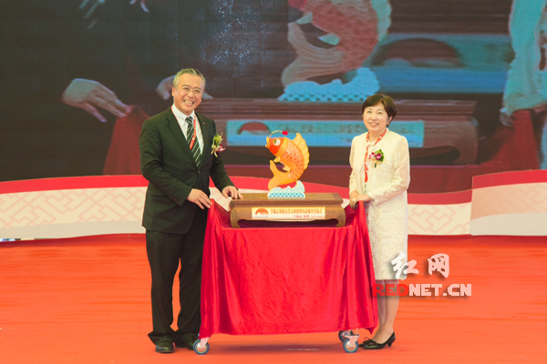(李锦记酱料集团主席李惠中先生向日本藤原酿造机械株式会社相关负责人赠礼。)