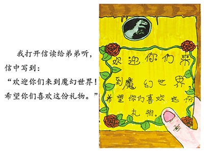 构思剧本对何悦尔来说,好像并不痛苦,她只用了几天时间,一个几百字的剧本就写了出来。“一个魔幻故事,我和弟弟在家里,收到一个快递的礼物,打开这个礼物,就把我和弟弟带进了魔幻世界,这里有白森林、恐龙城堡,在这些不同的世界里,颜色都是统一的。”