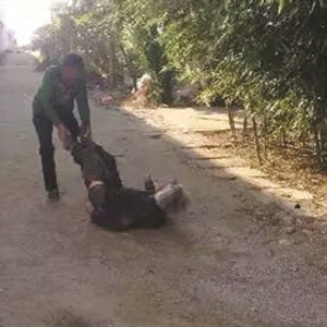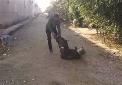 前天下午,我带孩子去沙河新建村走亲戚,孩子在外面玩耍时拍到一组照片,误认为是虐待老人,可真实事况并非如此,图片中的老人神志有点混乱,大小便不能自理,经常乱跑,其儿媳妇(也就是当事人)什么活都没时间做,天天除了做饭,就是帮她清洗沾满屎尿的衣裤、看守老人不给其乱跑,防止出现意外。这个老人神志有点混乱,脾气古怪,腿脚不方便,却还经常自己坐在地上爬出去乱跑,还不许别人碰她,她的儿媳妇为了把她带回家,身上经常被抓破,我家孩子拍照时正巧当事人手臂已经被抓破多处,当时天也快要黑了,无奈之下借邻居家小铁锹阻止老人乱走,并喊人帮忙把老人抬回家。
