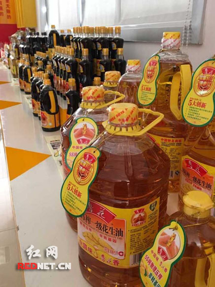 鲁花集团生产的花生油、自然鲜酱油产品。红网烟台10月13日讯(特派记者 蔡娟)滴滴鲁花,香飘万家。13日,“新常态·新定位·新提升——第十一届中国网络媒体山东行”采访团来到山东莱阳市,实地探访了世界最大的花生油生产企业、中国花生油第一品牌——鲁花,并探究其发展“密码”。