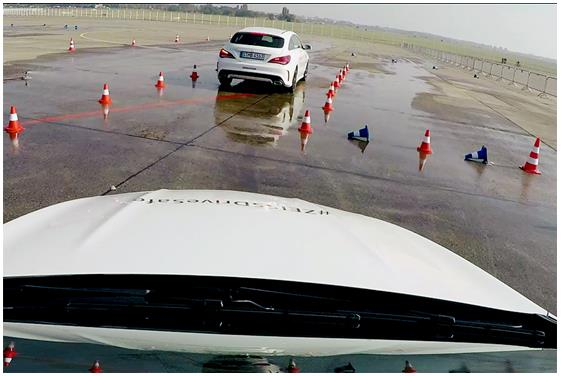在产品体验环节,嘉宾们戴上蔡司驾驶型镜片,由专业车手引导,驾驶现场的奔驰汽车,在设置于坦佩尔霍夫机场的赛道上亲自驾车体验。赛道模拟强光、道路反光、雨天湿滑、高速多弯、路边障碍等环境,让佩戴蔡司驾驶型镜片的体验者接受苛刻的外界干扰的挑战,来测试这款镜片真正能够为驾驶者带来的视觉改善。