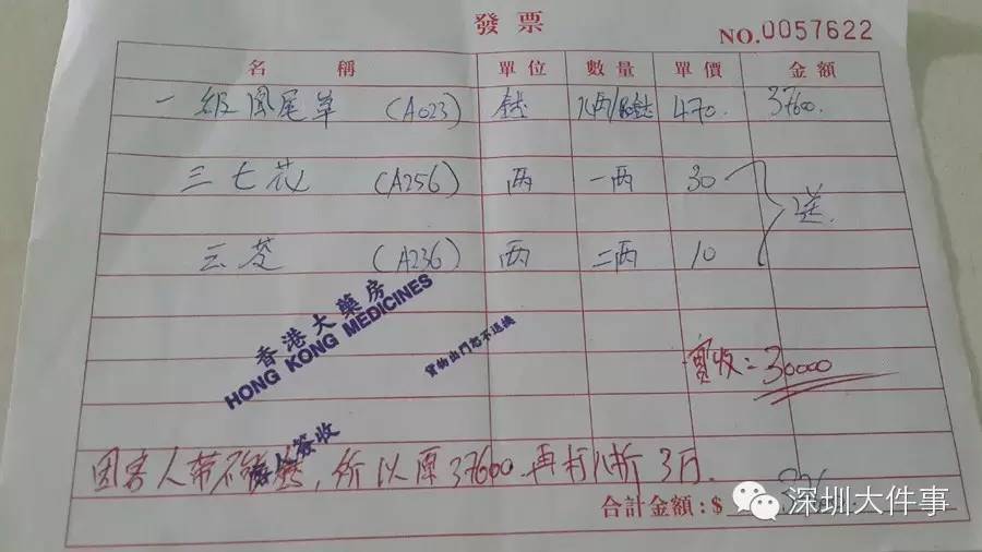 本着认栽的态度,王丽拿出了第3张银行卡。在签完名那一刻,她才惊觉自己竟被刷了30000港元,此时她从店员手里拿到了那张写着8两/80钱37600的收据,后来店员又在上边标注了“因客人带不够钱,所以原37600再打八折3万”。