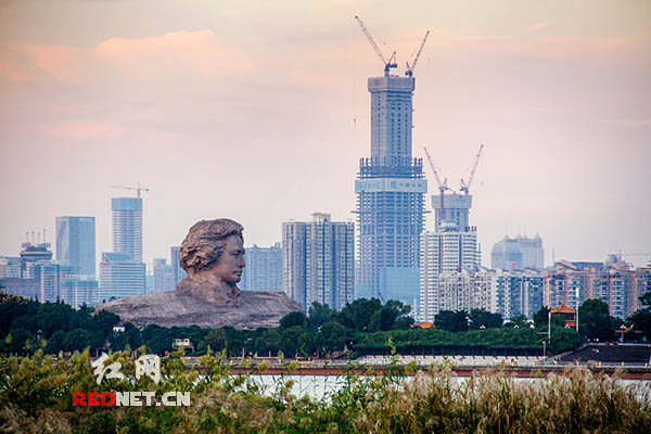 (从橘子洲大桥西远看湖南第一高楼九龙仓长沙国金中心。谈里宾 摄)