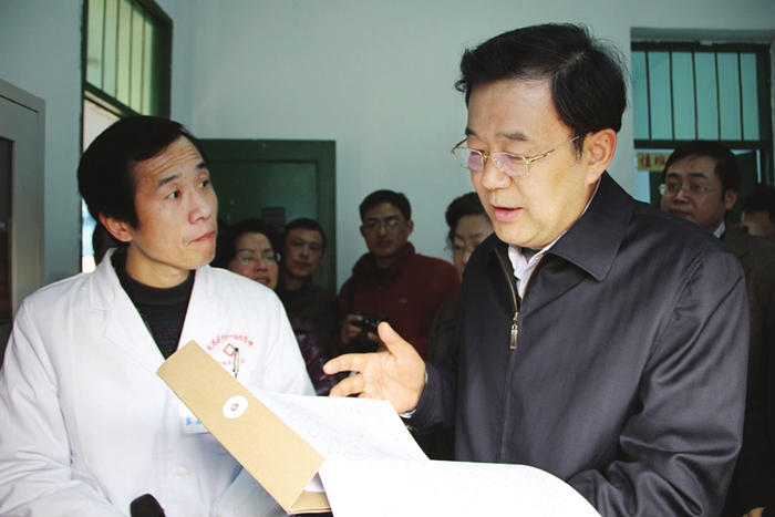2011年2月,时任国家发改委副主任、国务院医改办主任孙志刚在安徽基层医院调研。在发改委和卫计委任职期间,孙志刚曾多次来安徽调研医改。 (资料图片)