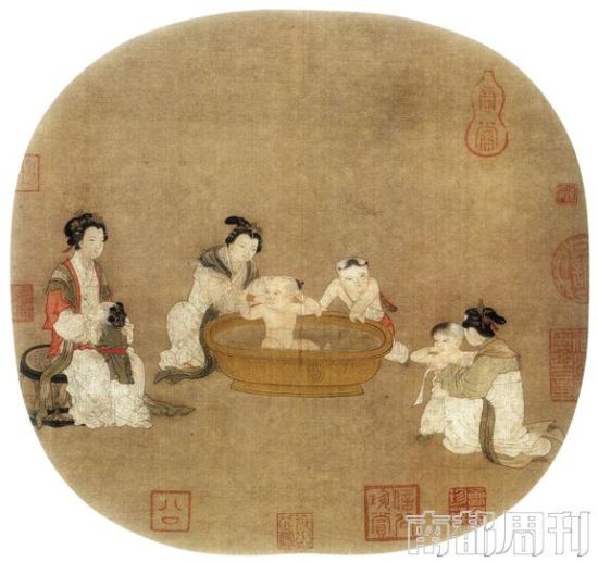 南宋《浴婴图》。美国弗利尔美术馆藏。