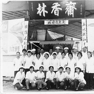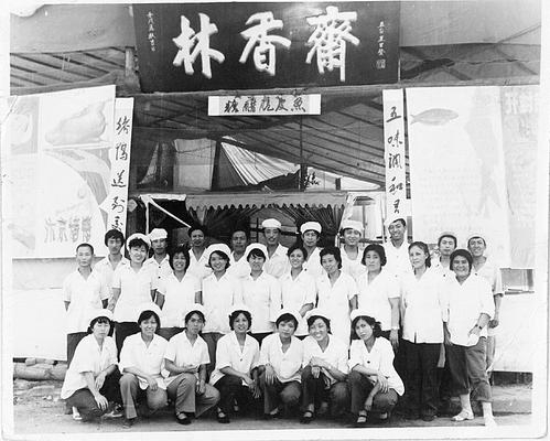 1983 年,林香斋厨师代表山西参加全国烹饪大赛获得 “特金奖”后,获奖人员开心合影。图为林香斋提供