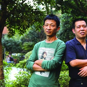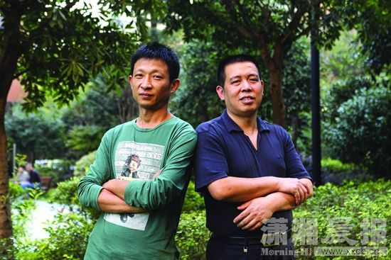 长沙谜语传承人王炜(左)和喻继贤。图/潇湘晨报记者 陈正
