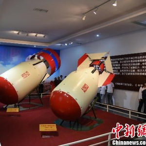 中新网梓潼10月16日电 (记者 杨勇)16日,中国两弾城“两弹模型馆”开馆仪式在四川梓潼县隆重举行。“两弹模型馆”位于梓潼县两弹城“两弹历程馆”2号馆,展陈的模型由中国工程物理研究院捐赠,“两弹”模型按照近似1:1比例制作,直观生动地向游客展现了“两弹”风采。