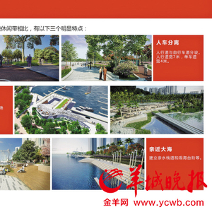 记者在指挥部看到的西段休闲带设计方案:沿线有喷泉步道,有鹅卵石步道,有附建景观凉棚的渔船码头,步道回转曲折,曲线与岸线宛转天成,美轮美奂,的确是国际范儿十足。具体建设分为D、E、F、G四个标段。沿途望海之窗、阅海广场、亲水台、渔人码头这些高大上的名字听起来就让人赏心悦目。