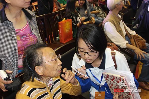(周南中学红贝网校园记者采访95岁高龄的周南老校友欧阳昭云。)