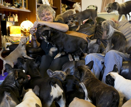 中新网10月18日电 据外媒报道,一位英国女子用实际行动诠释了什么叫做“爱狗如命”:这位叫做林恩·艾维特的58岁女子养了41条狗,艾维特和67岁的丈夫托尼几乎将所有的时间和精力用来照顾24条法斗、10条小牛头梗、4条吉娃娃和3条中国冠毛犬。