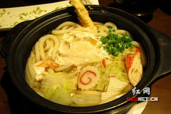 其实就是海鲜乌冬面。这家店的乌冬面是特制的鲜乌冬,口感独特,不过为什么这汤是甜味的呢?简直不能好好吃面了,特别是看着这锅里甜味的大虾和海鲜,简直有种暴殄天物的感觉呢。