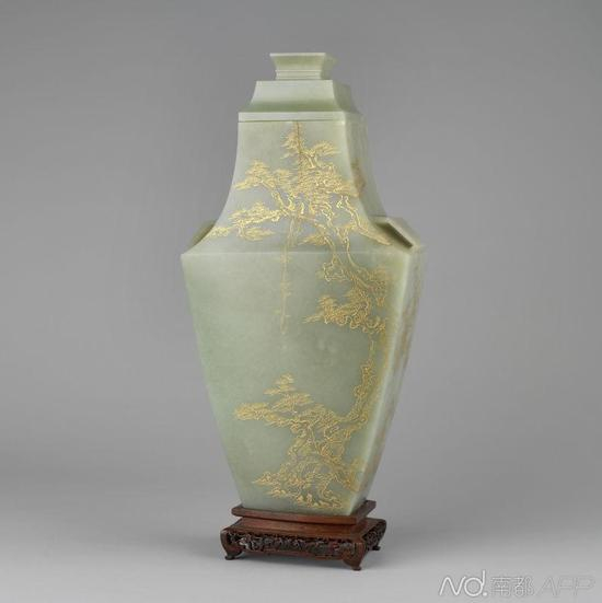 1896年,中国的外交官李鸿章(1823-1901)拜访了维多利亚女王经常下榻的奥斯本大院(Osborne House)。李鸿章作为光绪皇帝的代表,把这个玉花瓶送给维多利亚女王,瓶身上刻有青松和菊花,寓意长寿。