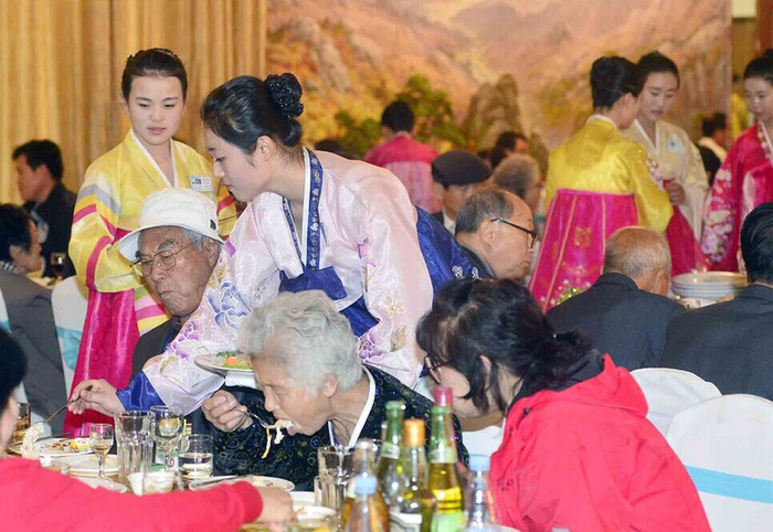 国际在线专稿:据韩国《国民日报》10月22日报道,朝韩离散家属团聚的的宴会现场上,年轻貌美的朝鲜女服务员引起了不少新闻媒体的关注。