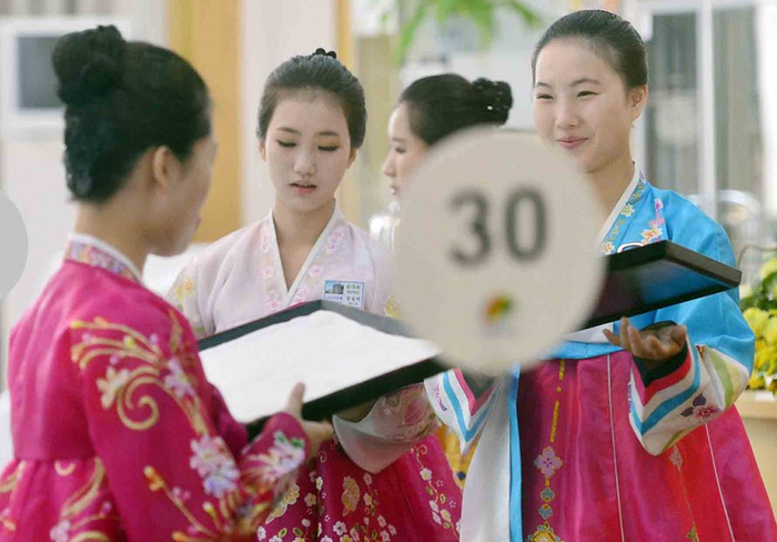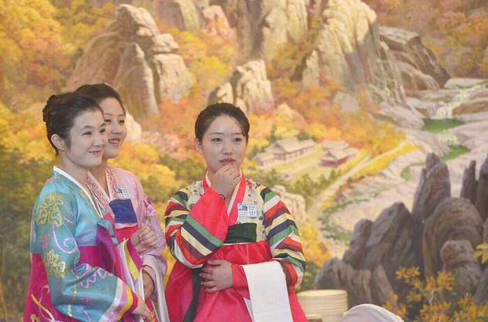 据悉,这些年轻貌美的朝鲜女服务员共计50余名,专门负责金刚山饭店离散家属的餐饮服务。这些美女服务员当中,一位叫做梁允美(音译)的18岁服务员最受韩国媒体关注。韩国网友看到照片后,纷纷为她的美貌而倾倒,直呼“绝世美女”,不少离散家属也纷纷与这些美女服务员合影留念。